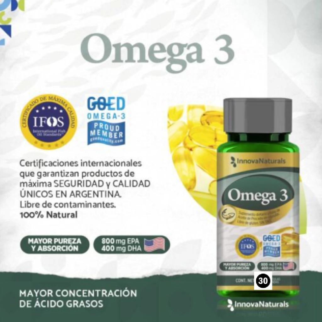 ÚNICO OMEGA 3 EN ARGENTINA que cuenta con CERTIFICACIÓN IFOS (International Fish Oil Standards) y GOED (The Global Organization for EPA & DHA); ambas son certificaciones internacionales que GARANTIZA un producto de CALIDAD; midiendo pureza y concentración del aceite Omega 3. Certificaciones 5 estrellas, garantizan estar libre de contaminantes, LIBRE de MERCURIO (metales pesados, mercurio y dioxinas), así como su potencia, CONCENTRACIÓN y estabilidad. Lo que dice en la etiqueta es realmente lo que contiene. Además nos garantizan la sustentabilidad.