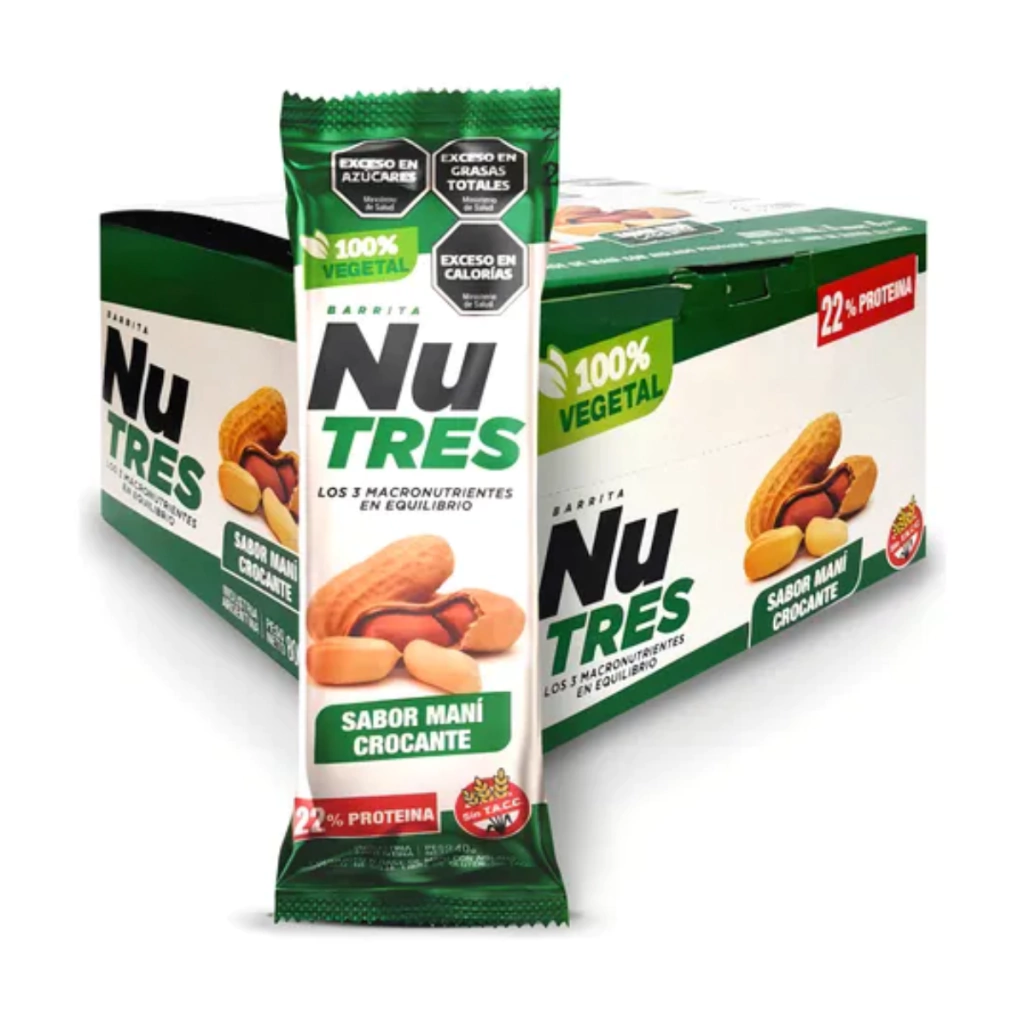 La Barrita Proteica Sin TACC Nutres 40g combina el delicioso sabor del maní tostado con el aporte nutricional de proteína de soja, en una presentación práctica para consumir en cualquier momento del día. Ideal para quienes buscan energía, saciedad y una opción libre de gluten.